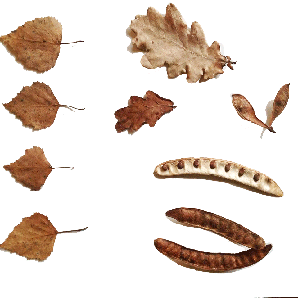 Met gedroogde bladeren als basis maken we nieuwe composities en dienen de mooie structuren van deze bladeren als basis voor nieuwe vormen en betekenissen.